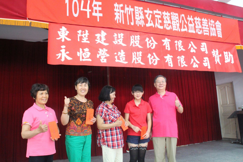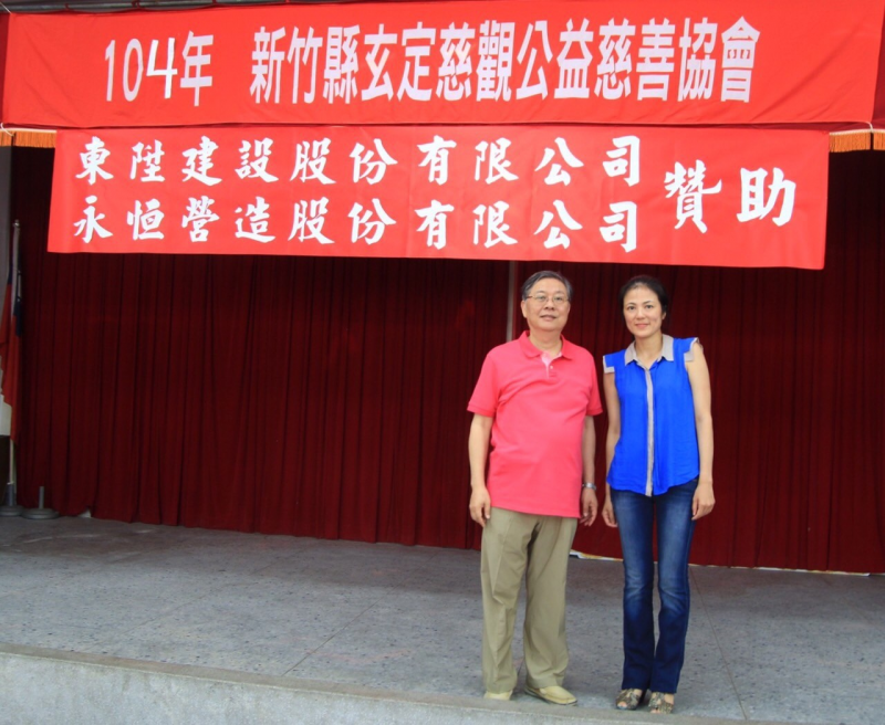 東陞建設、永恆營造愛心贊助2015年07月04日(星期六),在竹北里民活動中心由新竹縣玄定慈觀公益慈善協會主辦的「玄定有愛~捐血捐愛心」,同時當天也舉行習俗有著代表甜甜蜜蜜團團圓圓的福氣搓湯圓活動,及關懷弱勢團體發放慈善金。(華山社會福利慈善事業基金會、財團法人喜憨兒社會福利基金會、財團法人台灣省私立香園紀念教養院及財團法人創世社會福利基金會等機構四所單位)